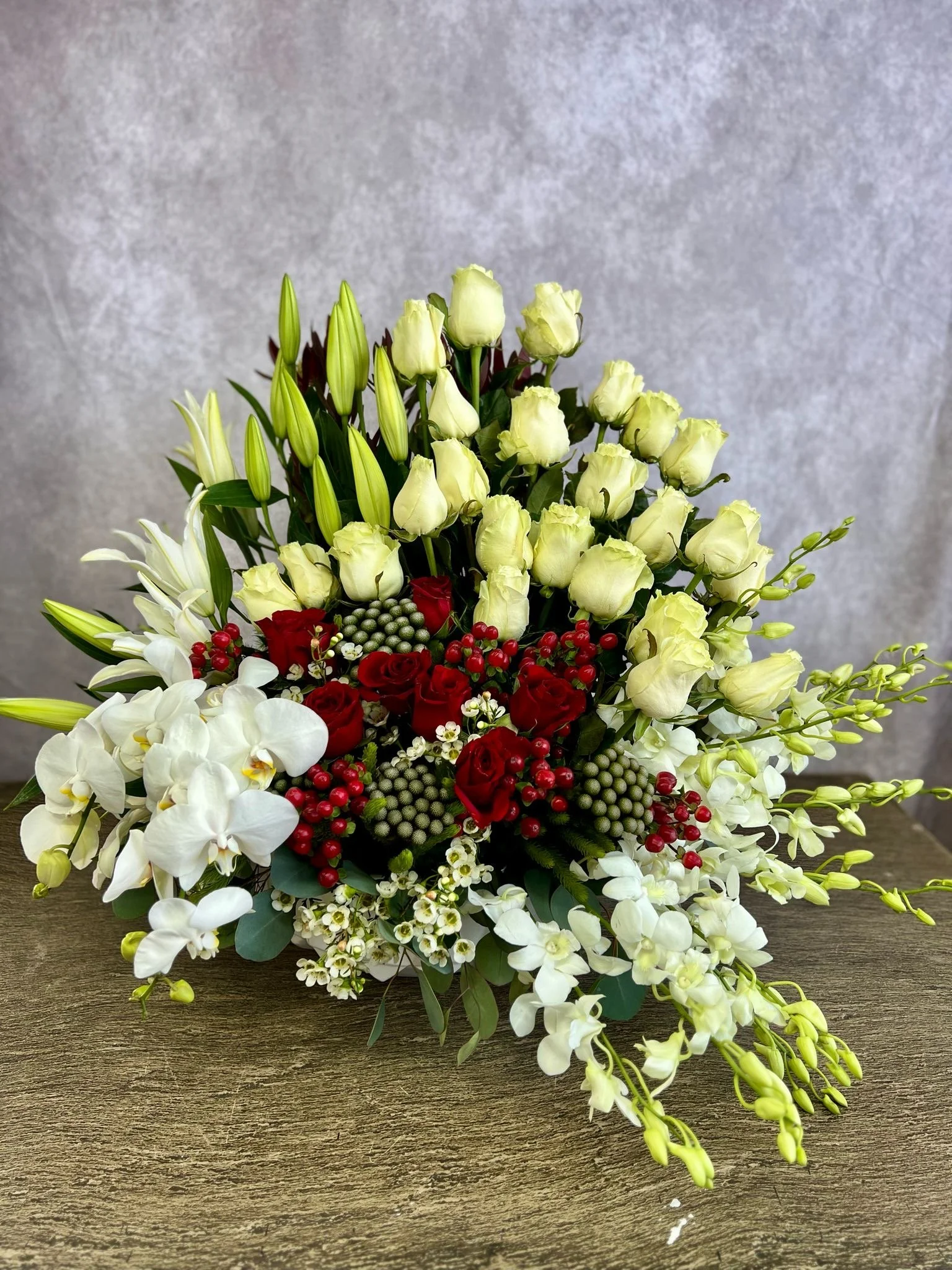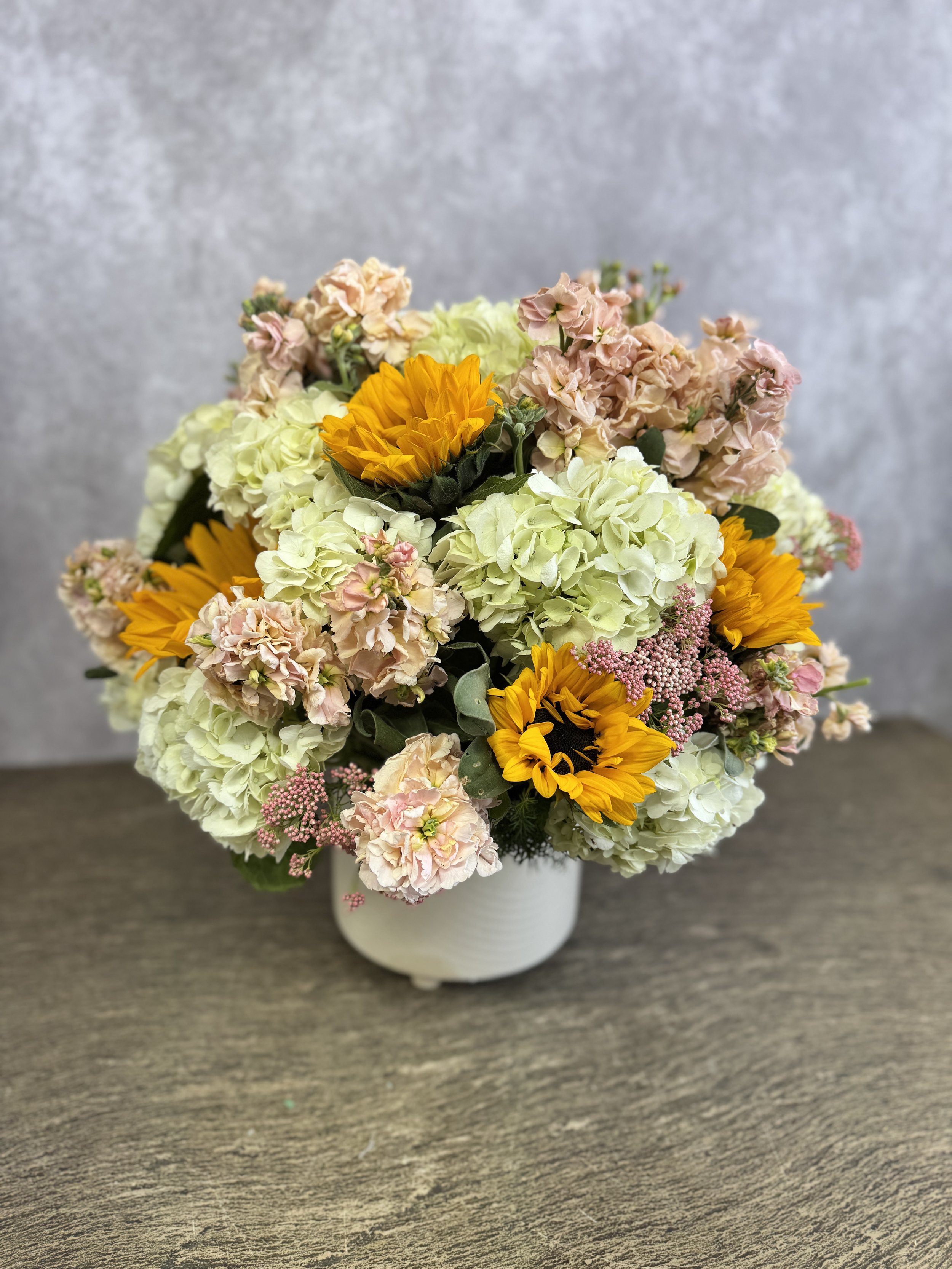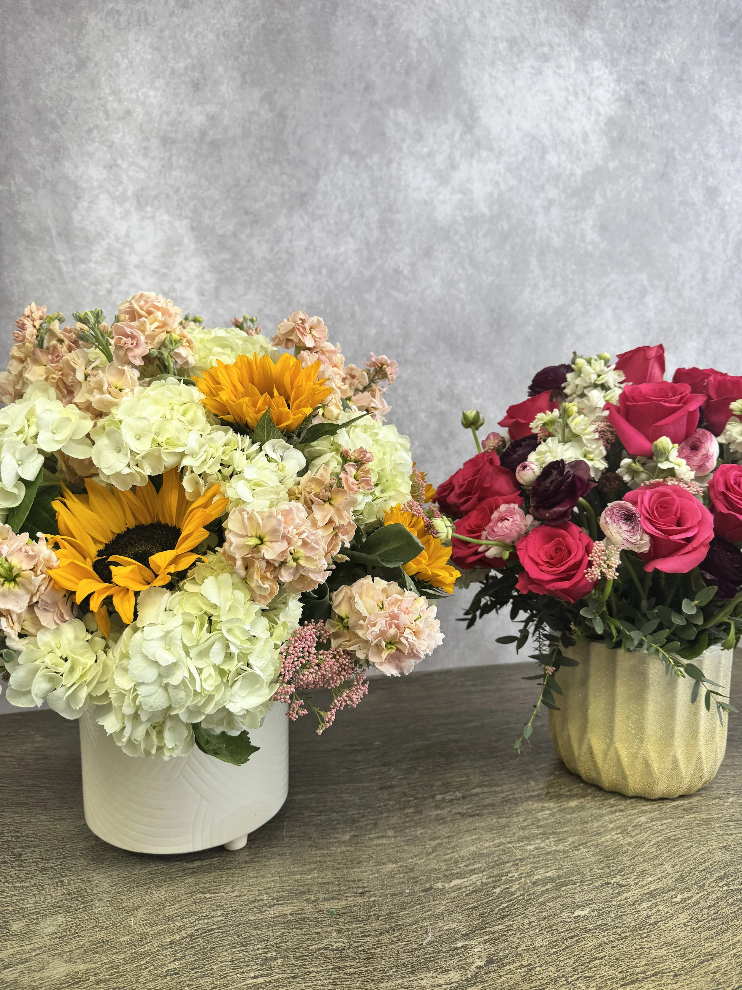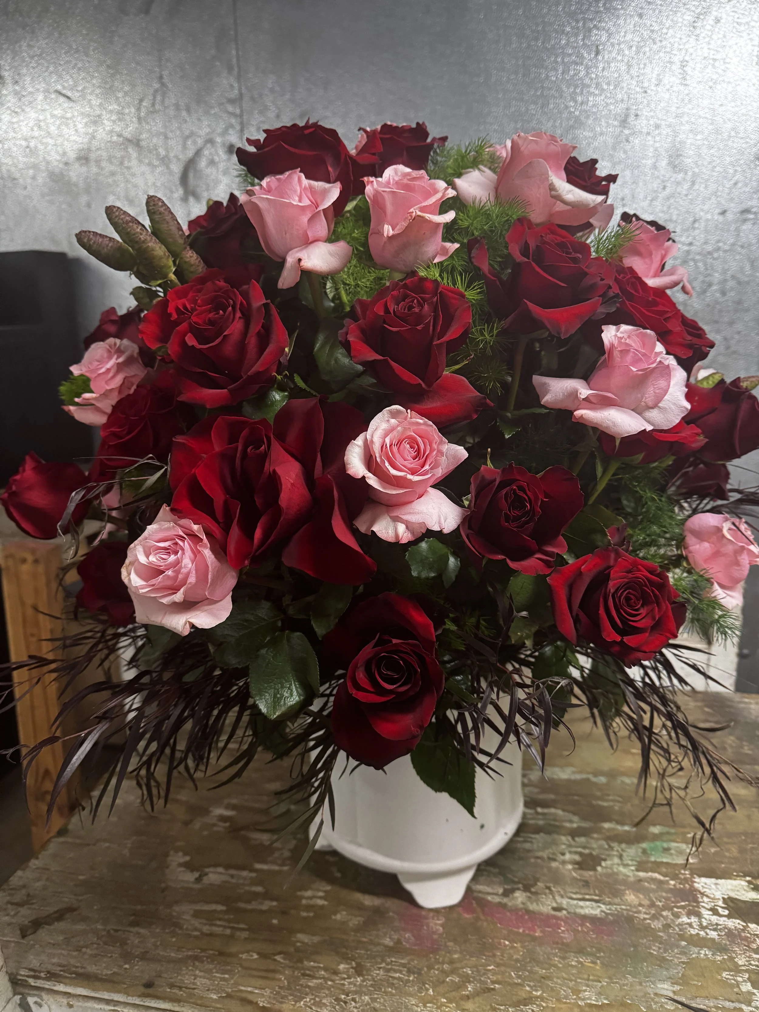 Choose your vase and your color; we will make your dreamy arrangement. Select your preferred hues and styles, and watch as we create a beautiful floral masterpiece tailored to your tastes. Whether you desire a classic look or a modern twist, our skilled florists are here to bring your vision to life. Start creating your perfect arrangement today!